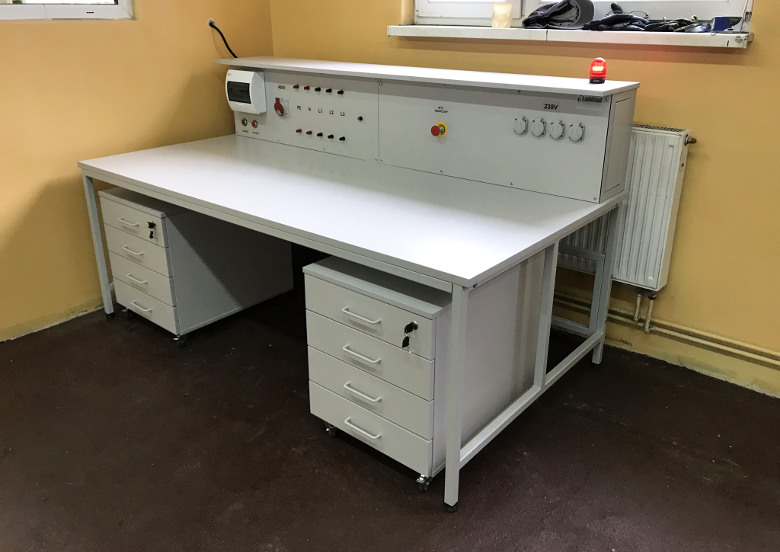 Wysokociśnieniowy laminat HPL (z dodatkiem żywicy fenolowej gr. 8mm) zabudowany jednostronnie na płycie bazowej melaminowanej tworząc jednolity blat roboczy o gr. 26mm. Krawędzie brzegowe oklejone maszynowo trwałym obrzeżem PCV o gr. 2mm
