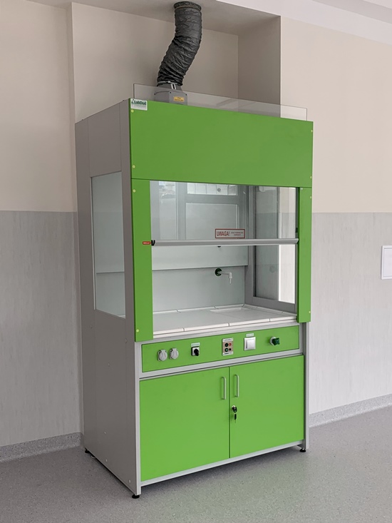 Dygestorium szkolne przeznaczone do wykonywania badań oraz doświadczeń w szkolnych pracowniach chemicznych. Zapewnia