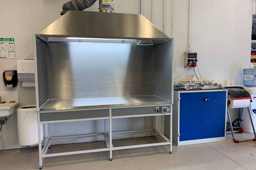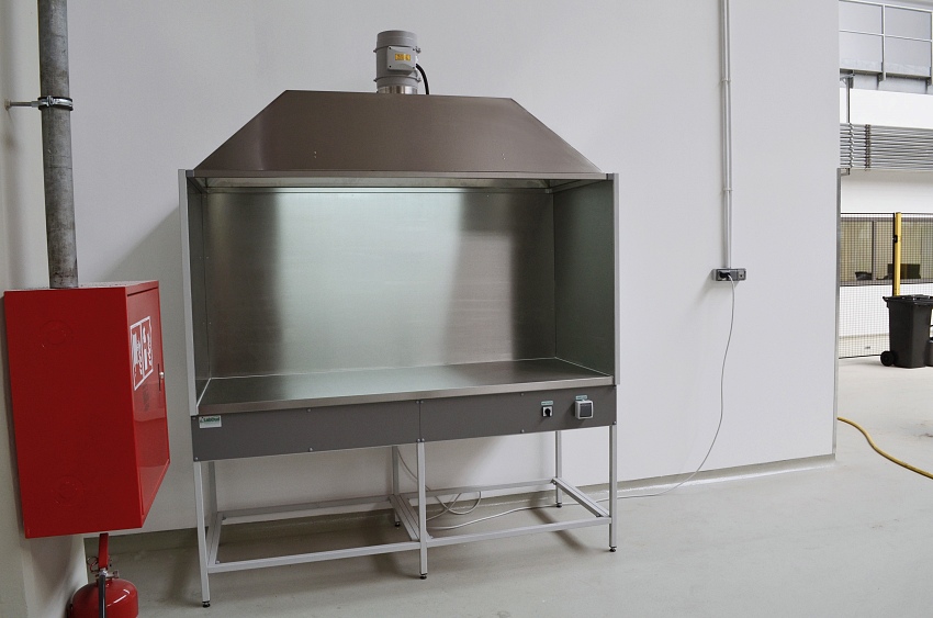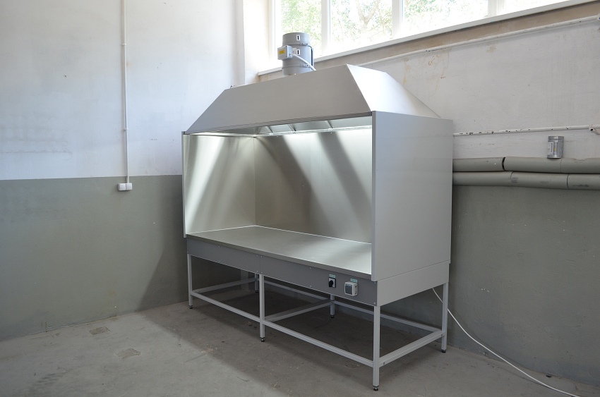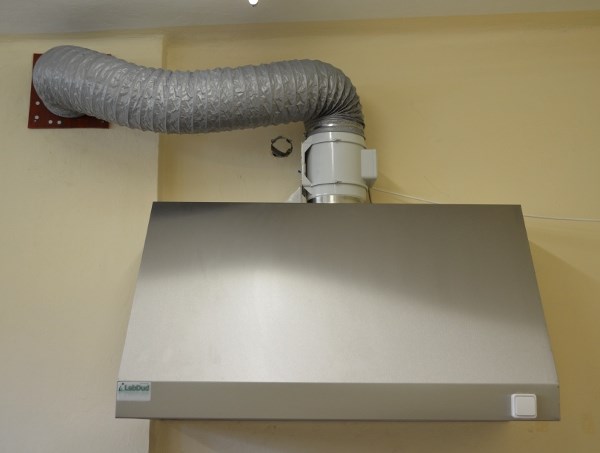 - Okap laboratoryjny / odciąg stanowiskowy przyścienny wykonany w całości z blachy stalowej OH18N9. Przystosowany do montażu na ścianie. (Opcja z wentylatorem).