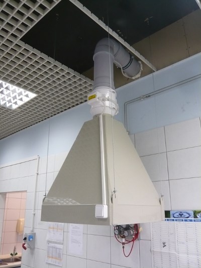 Odciąg stanowiskowy (okap) do usuwania oparów chemicznych oraz różnego rodzaju pyłów. Do montowania na ścianie lub suficie nad stanowiskiem roboczym. W zależności od przeznaczenia, okap może być wykonany z blachy stalowej nierdzewnej OH18N9 lub chemoodpornego polipropylenu.
