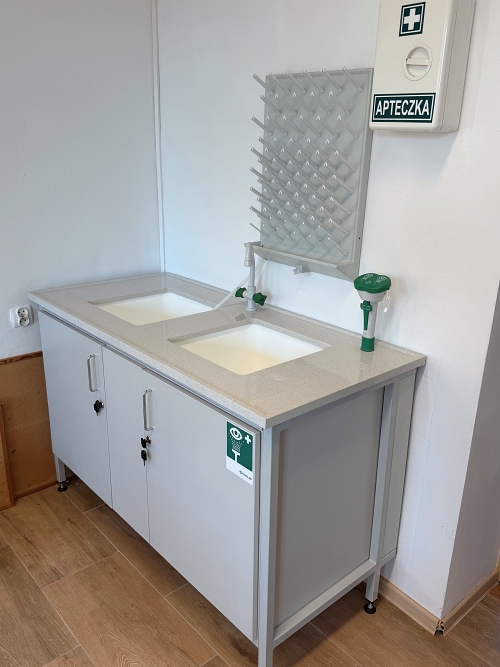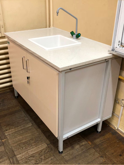 Stoły laboratoryjne do mycia / szafki wodne do szkolnych pracowni