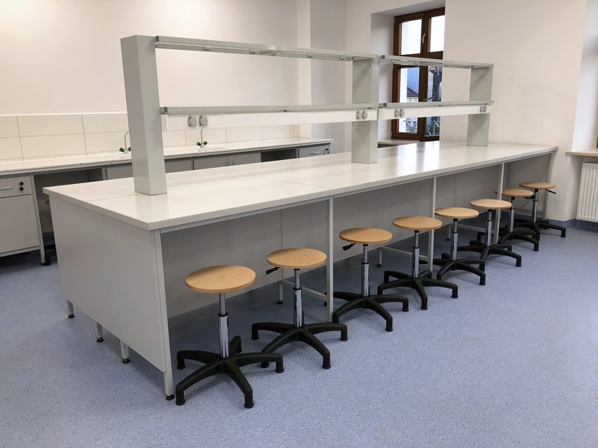 Stoły laboratoryjne wyspowe do szkolnych pracowni chemicznych