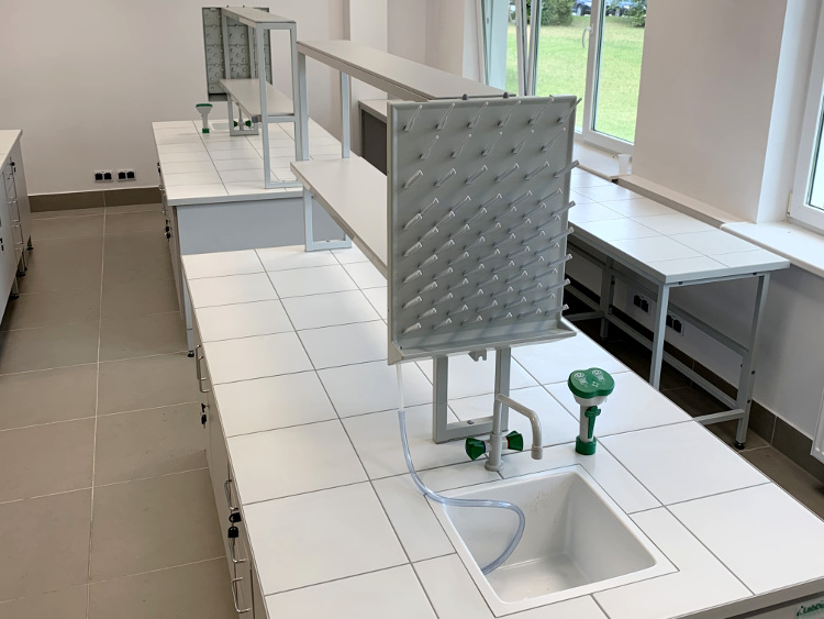 Przykładowe wyposażenie: baterie laboratoryjne zimnej wody, zlewiki.