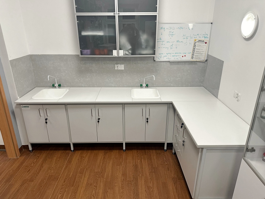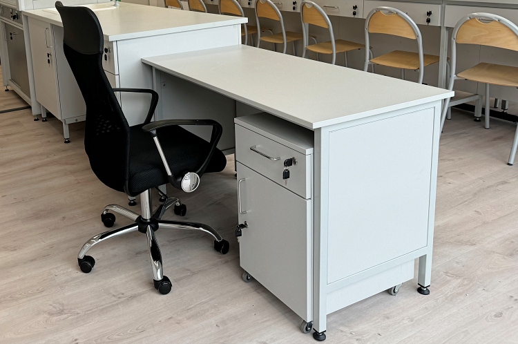 Wykonujemy stoły laboratoryjne przyścienne zabudowane szafkami, a jeżeli praca wymaga pozycji siedzącej - z szafkami oraz miejscami do siedzenia.