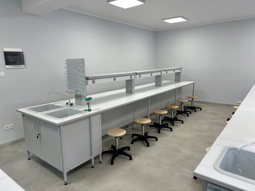 - Stoły laboratoryjne wyspowe 14-osobowe do szkolnej pracowni chemicznej