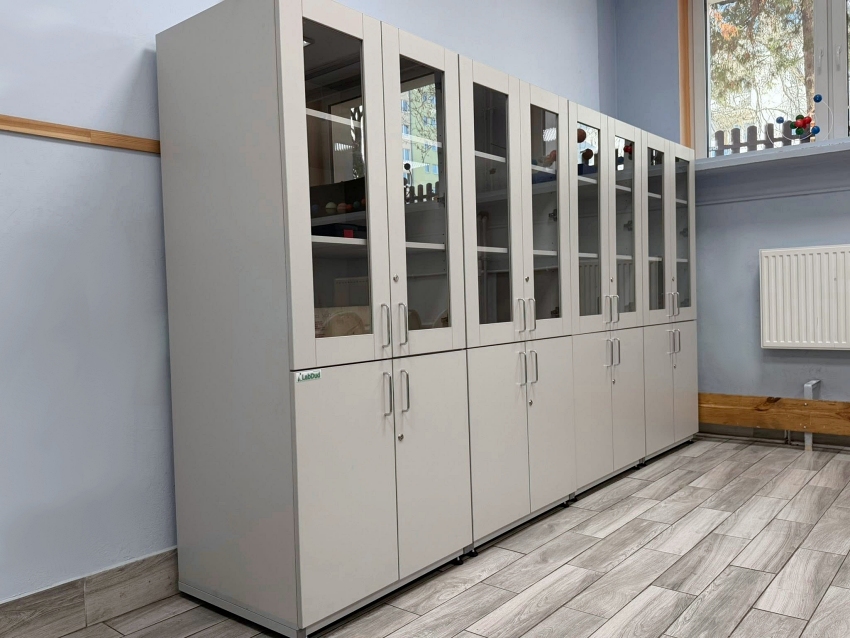 Szafy laboratoryjne przeznaczone do przechowywania różnego typu sprzętu i aparatury laboratoryjnej.
